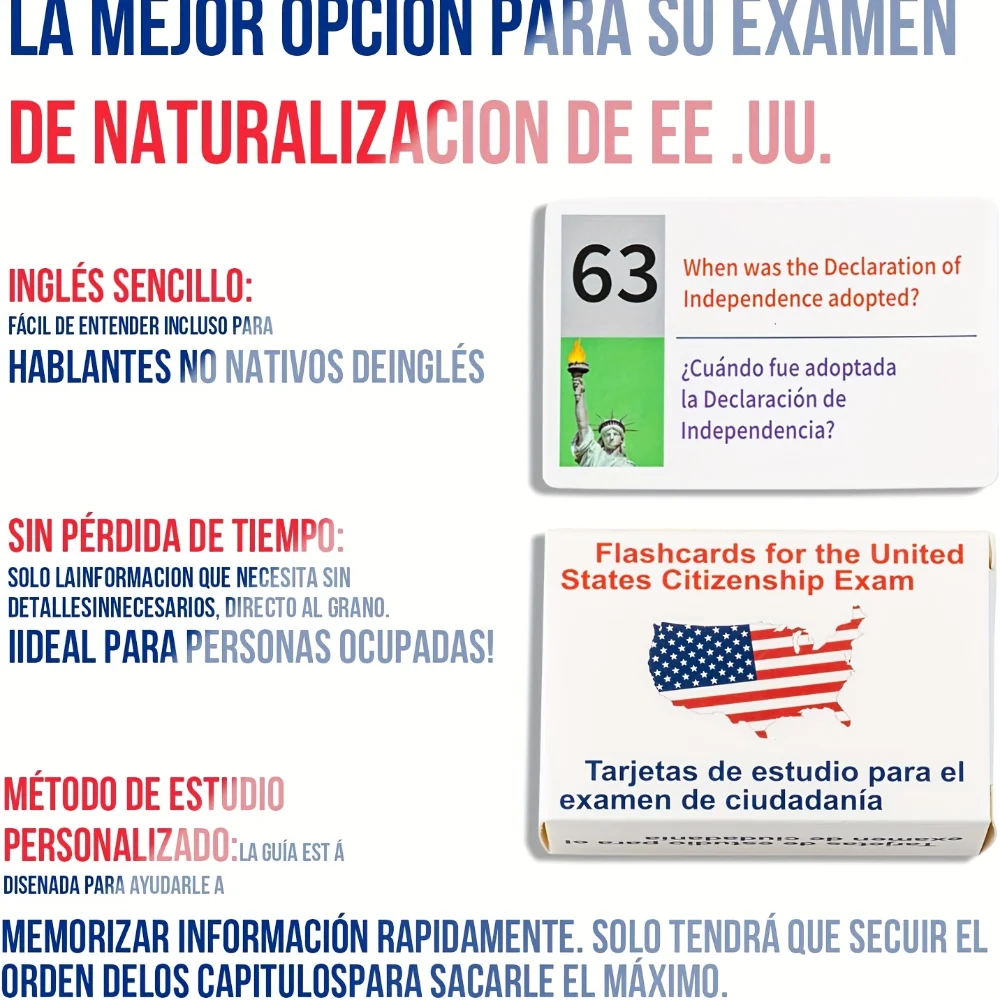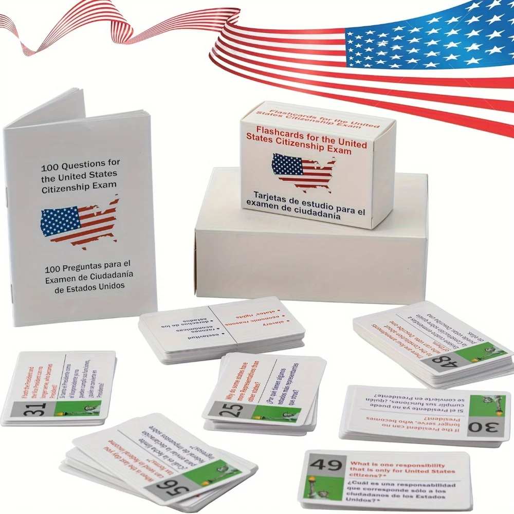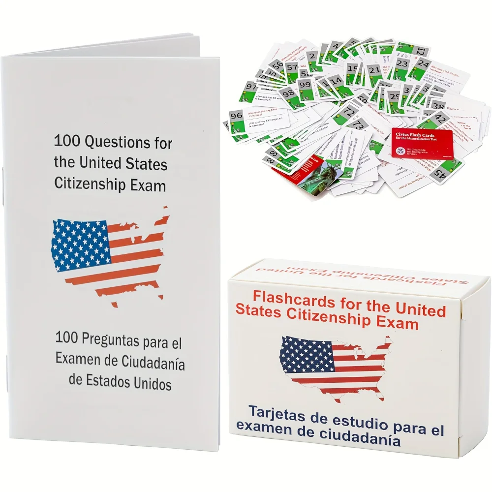 Comprehensive Study Too–The U.S. Civics Test Flash Cards Combo Set includes 100 essential flashcards designed for those preparing for the Naturalization Citizenship exam, covering all topics tested on the civics test for citizenship. U.S Civics Test Flash Cards Combo Set with Bilingual Booklet – English/Spanish, Naturalization Study Guide with 100 US Civics Questions & Answers, Flashcards for The United States Citizenship Easy to use: Civics flashcards are easy to use and help enhance test preparation. It provides a structured and organized approach to studying, helping you focus on the most important information Interactive Learning: These naturalization flash cards facilitate interactive learning, allowing users to quickly review and revise key information necessary for passing the civics test for citizenship with confidence. Perfect for Language Learners: Whether you are studying in English or Spanish, this comprehensive combo set of us citizenship flash cards is an invaluable resource for mastering the U.S. Civics Test, making it an essential tool for anyone aiming to succeed in their naturalization journey.