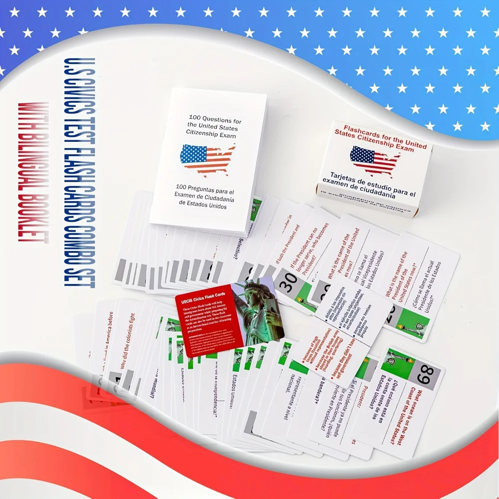 U.S Civics Test Flash Cards Combo Set With Bilingual Booklet Flashcards For Citizenship Naturalization Study Guides Cards Games